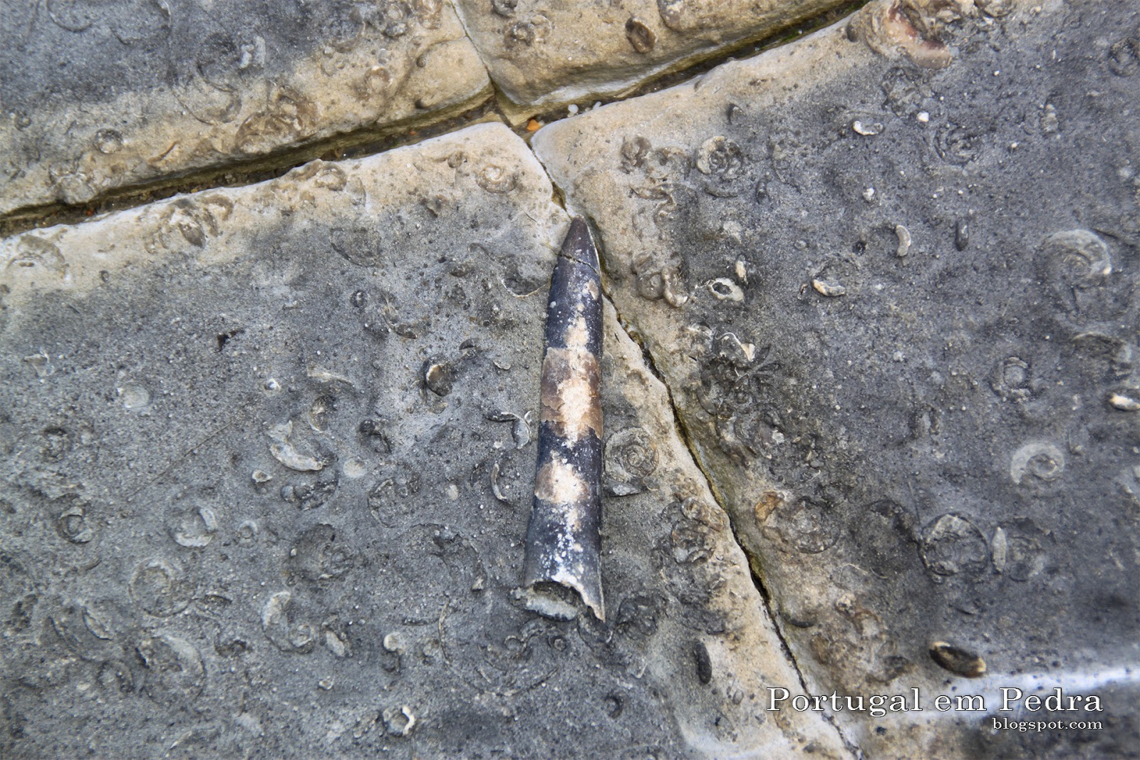 Não só se podem avistar rostros (rostrum) mas também, embora em menor número, os fragmocones (phragmocone) geralmente separados dos primeiros.
